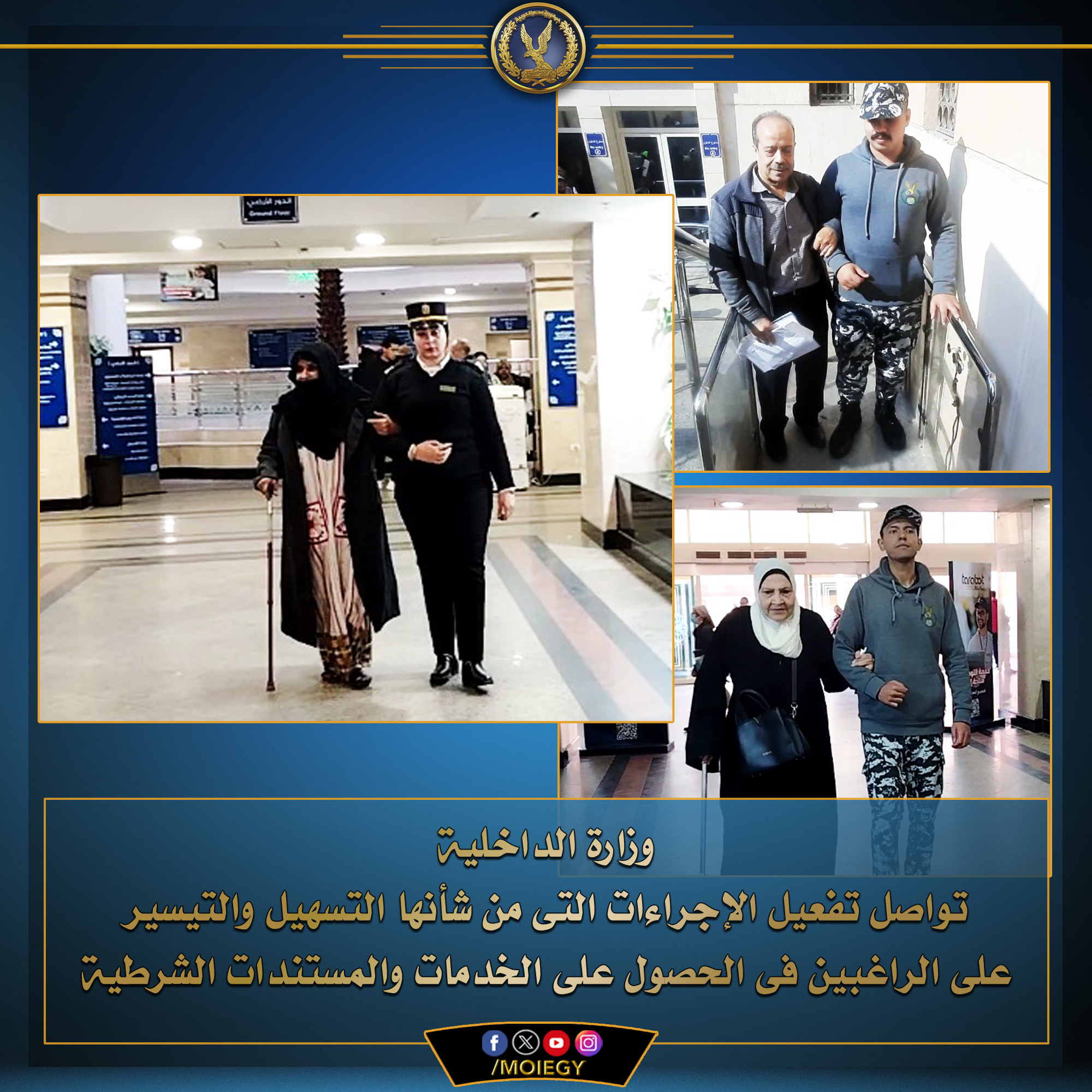 وتؤكد الوزارة على مواصلة إتخاذ كافة الإجراءات التى من شأنها التسهيل والتيسير على المواطنين والمترددين الراغبين فى إستخراج المستندات بكافة المواقع الشرطية.. كأحد الثوابت الجوهرية التى ترتكز عليها المنظومة الأمنية المعاصرة.