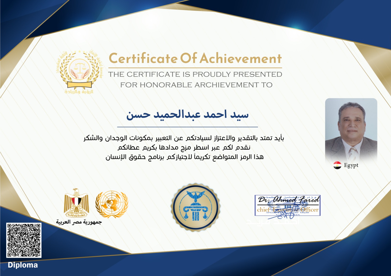 With great pleasure and pride, the Vision and Leadership Foundation extends its sincere congratulations to you. This is a distinctive mark of your membership in the Foundation. We consider it an honor and a valuable asset to our journey toward achieving vision and leadership in our fields of work. We trust your expertise, and you may add many benefits to our goals and mission.