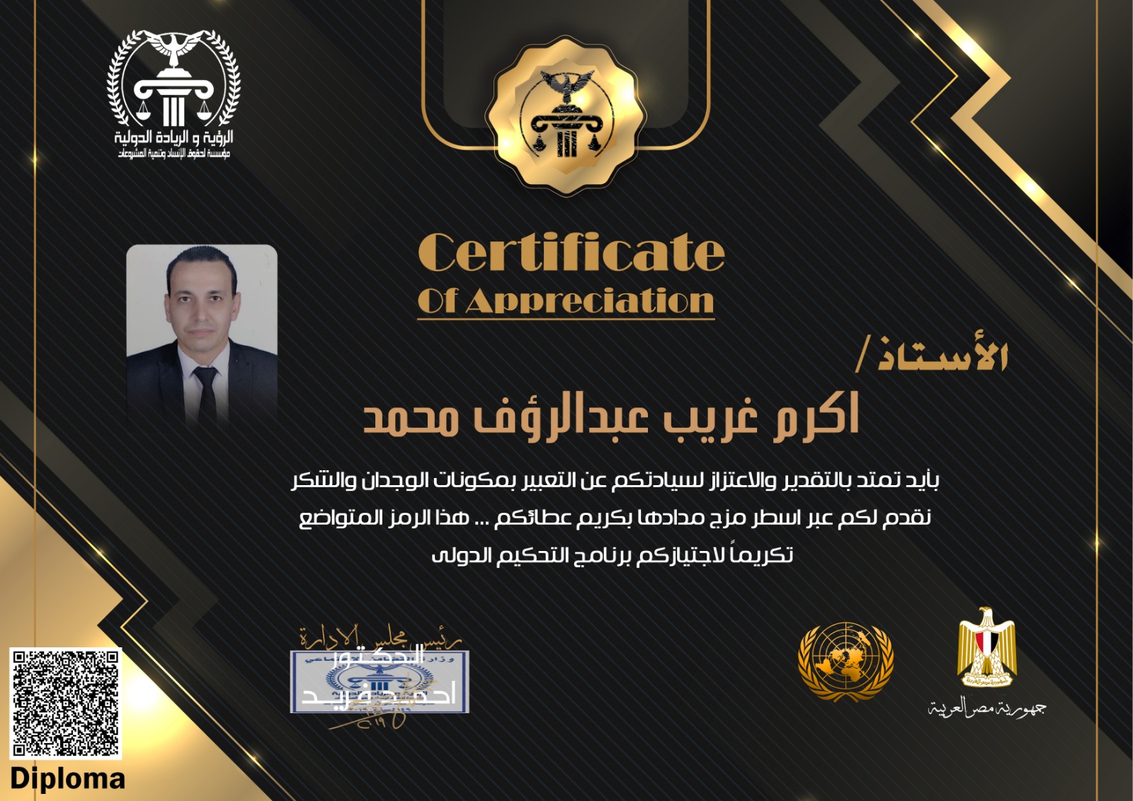 With great pleasure and pride, the Vision and Leadership Foundation extends its sincere congratulations to you. This is a distinctive mark of your membership in the Foundation. We consider it an honor and a valuable asset to our journey toward achieving vision and leadership in our fields of work. We trust your expertise, and you may add many benefits to our goals and mission.
