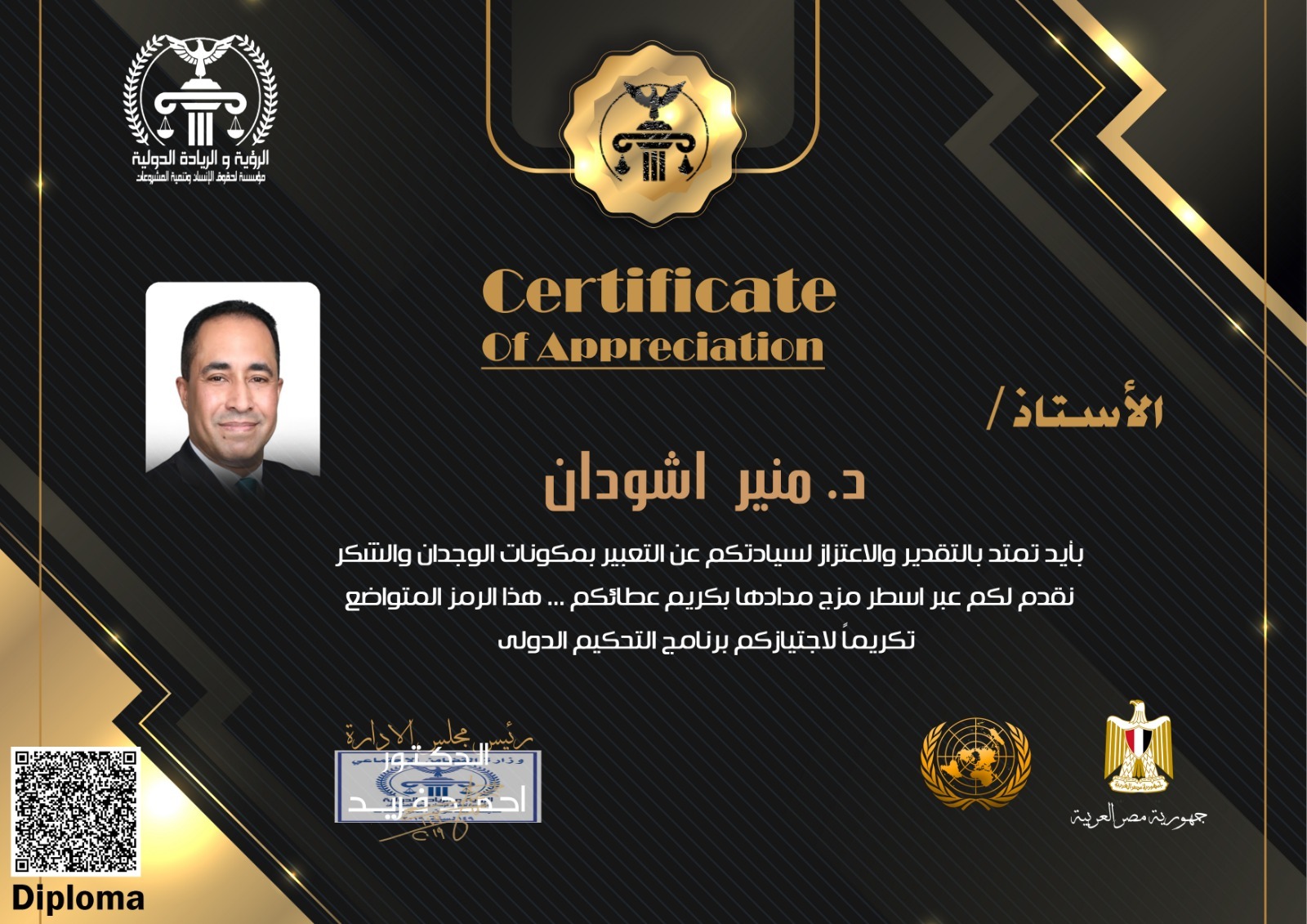 With great pleasure and pride, the Vision and Leadership Foundation extends its sincere congratulations to you. This is a distinctive mark of your membership in the Foundation. We consider it an honor and a valuable asset to our journey toward achieving vision and leadership in our fields of work. We trust your expertise, and you may add many benefits to our goals and mission.