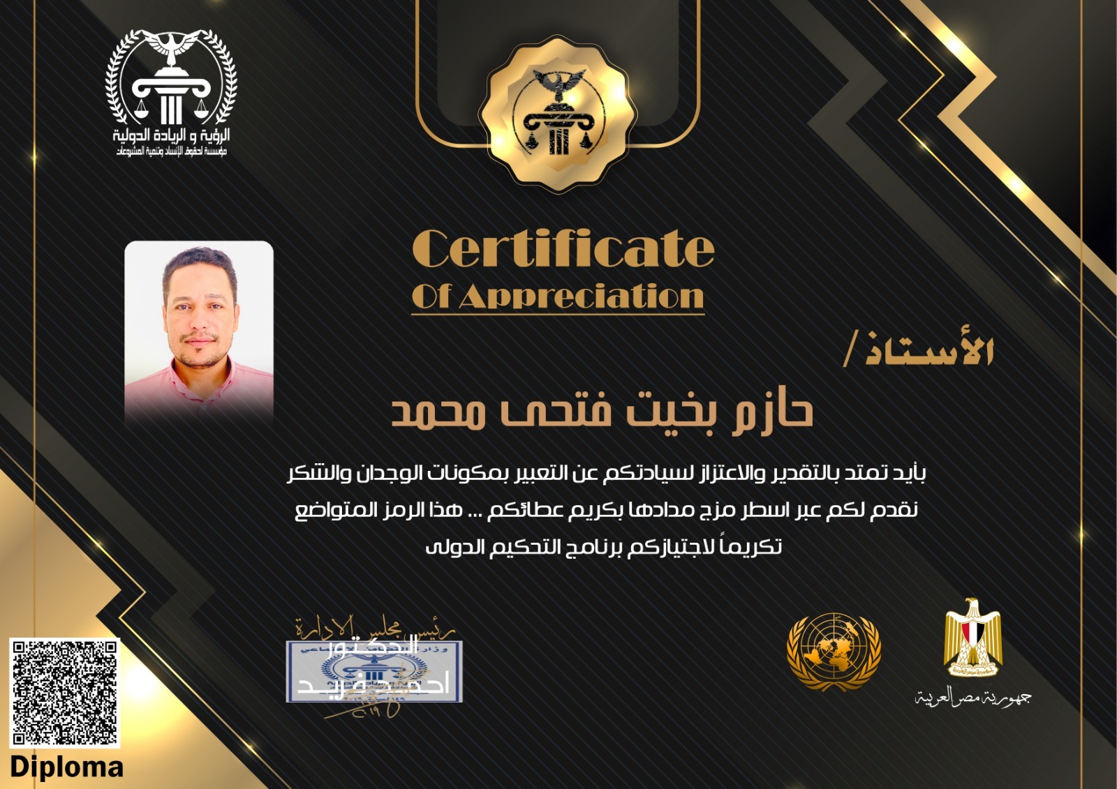 With great pleasure and pride, the Vision and Leadership Foundation extends its sincere congratulations to you. This is a distinctive mark of your membership in the Foundation. We consider it an honor and a valuable asset to our journey toward achieving vision and leadership in our fields of work. We trust your expertise, and you may add many benefits to our goals and mission.