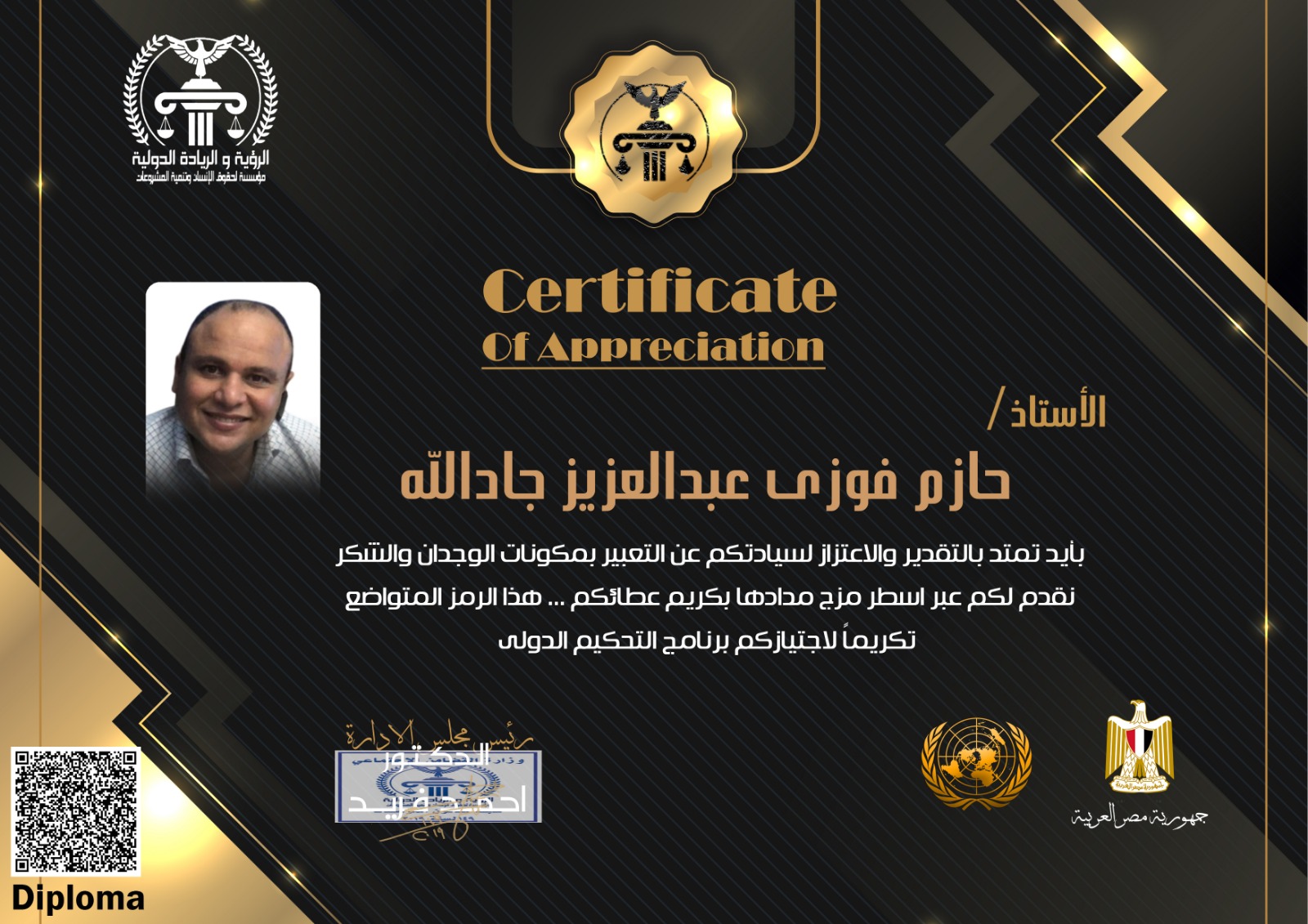 With great pleasure and pride, the Vision and Leadership Foundation extends its sincere congratulations to you. This is a distinctive mark of your membership in the Foundation. We consider it an honor and a valuable asset to our journey toward achieving vision and leadership in our fields of work. We trust your expertise, and you may add many benefits to our goals and mission.