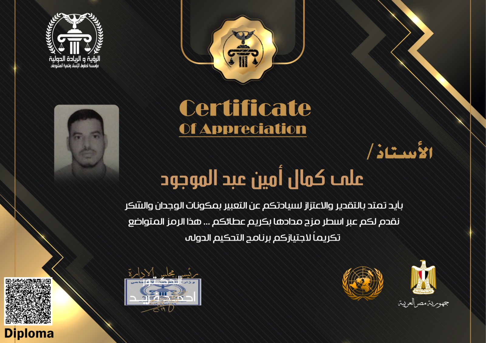 With great pleasure and pride, the Vision and Leadership Foundation extends its sincere congratulations to you. This is a distinctive mark of your membership in the Foundation. We consider it an honor and a valuable asset to our journey toward achieving vision and leadership in our fields of work. We trust your expertise, and you may add many benefits to our goals and mission.