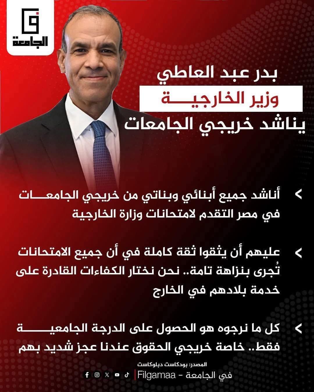 ايمانا من الدور المجتمعى الذى تقوم به مؤسسة الرؤية والريادة الدولية فى اطار سعيها الدائم لتطوير الكوادر الشابه ووضعهم على اول الطريق الامثل لتحقيق الاهداف العامة تناشد مؤسسة الرؤية والريادة الدولية كل اعضائها الحاصلين على مؤهلات عليا و الحاصلين على شهادة جامعة القاهرة في برنامج( العلاقات الدولية السياسية والدبلوماسية)لتقديم على اختبارات وزارة الخارجية لمن يسعى ويهدف الى التمثيل الدبلوماسى لجمهورية مصر العربية