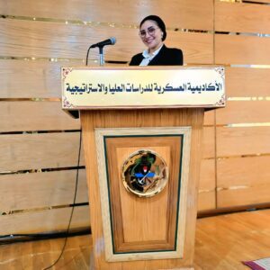 خريجة الأكاديمية العسكرية للدراسات العليا والاستراتيجية.