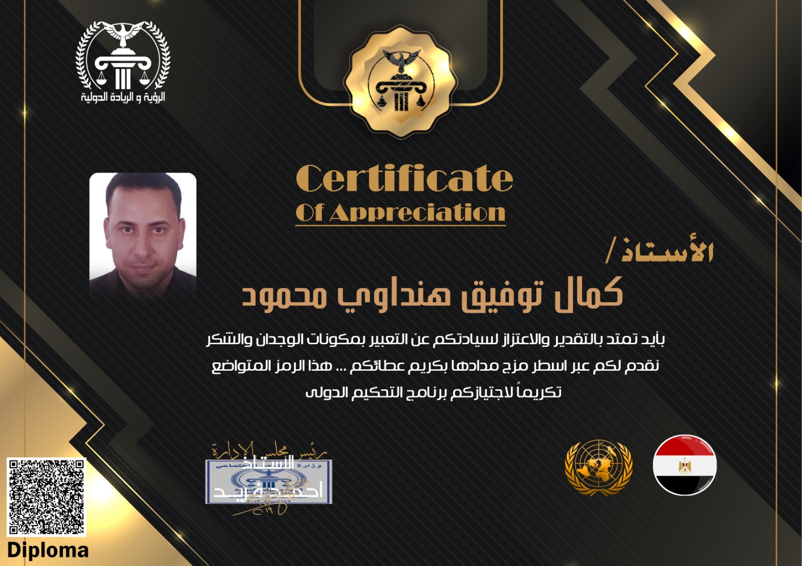 With great pleasure and pride, the Vision and Leadership Foundation extends its sincere congratulations to you. This is a distinctive mark of your membership in the Foundation. We consider it an honor and a valuable asset to our journey toward achieving vision and leadership in our fields of work. We trust your expertise, and you may add many benefits to our goals and mission.