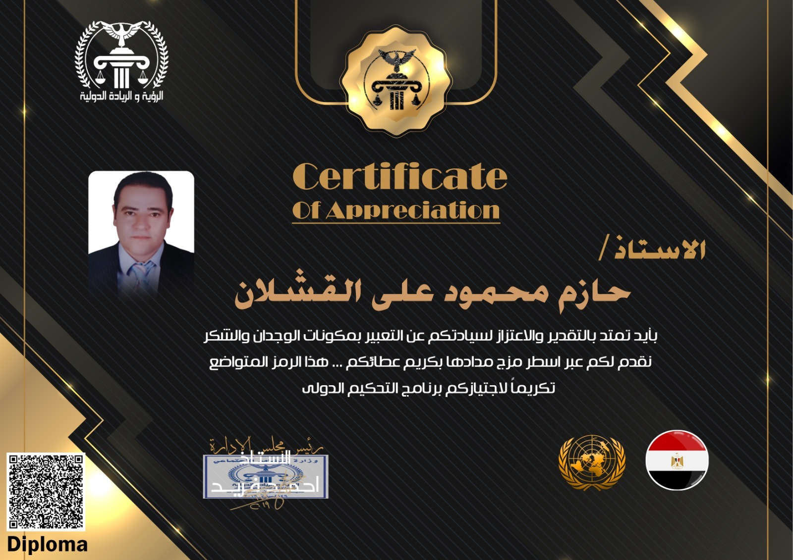 With great pleasure and pride, the Vision and Leadership Foundation extends its sincere congratulations to you. This is a distinctive mark of your membership in the Foundation. We consider it an honor and a valuable asset to our journey toward achieving vision and leadership in our fields of work. We trust your expertise, and you may add many benefits to our goals and mission.